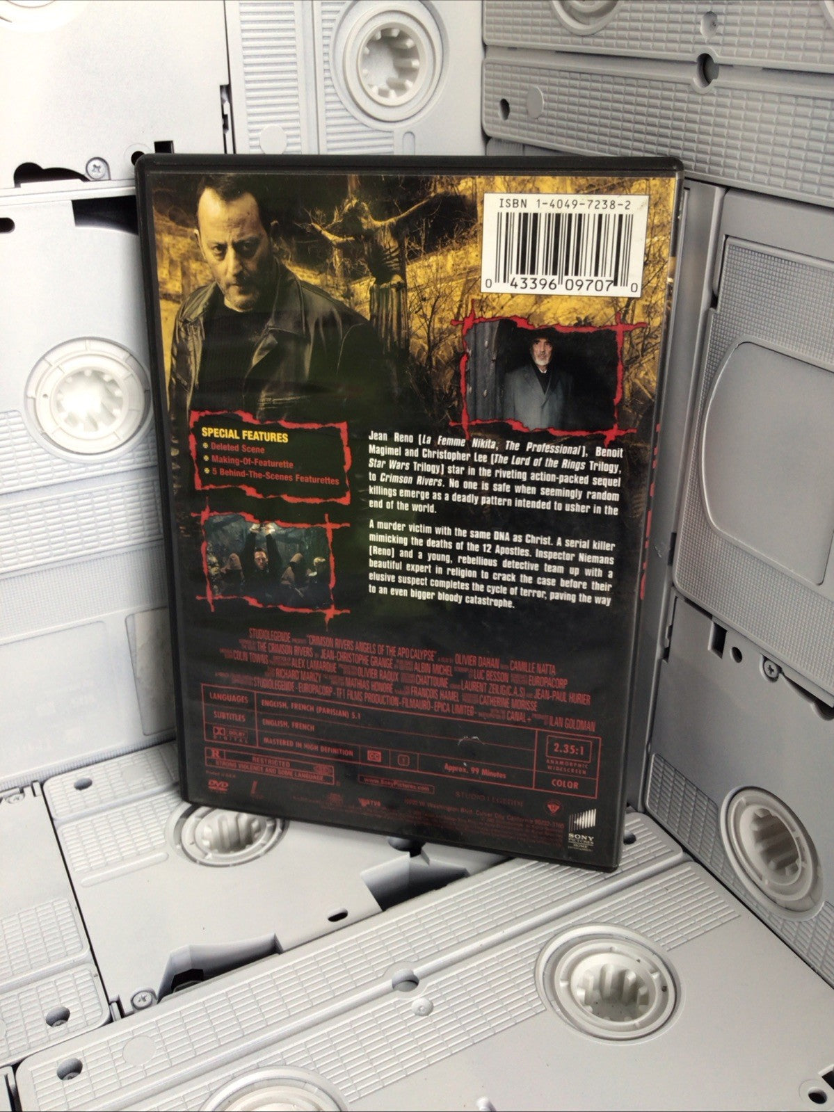 The product is a DVD of the movie "Crimson River-Angels of the Apocalypse" released in 2004. It is a mystery/suspense film with a run time of 99 minutes, rated R. The DVD includes both English and French language tracks and is produced by Sony Pictures. This gripping thriller follows the story of a journalist investigating a mysterious cult and the dangerous secrets they are hiding.