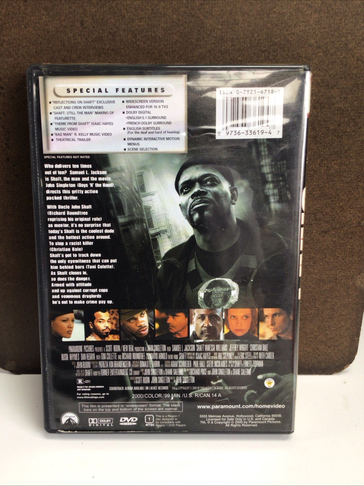 The product is the DVD of the movie "Shaft (2000)", directed by John Singleton and produced by John Singleton and Scott Rudin. This action-packed thriller has a run time of 99 minutes and is rated R. It falls under the genre of thrillers and is produced by Paramount Studio. The film stars Samuel L. Jackson as the character Shaft and is a must-watch for fans of intense and gripping movie experiences.