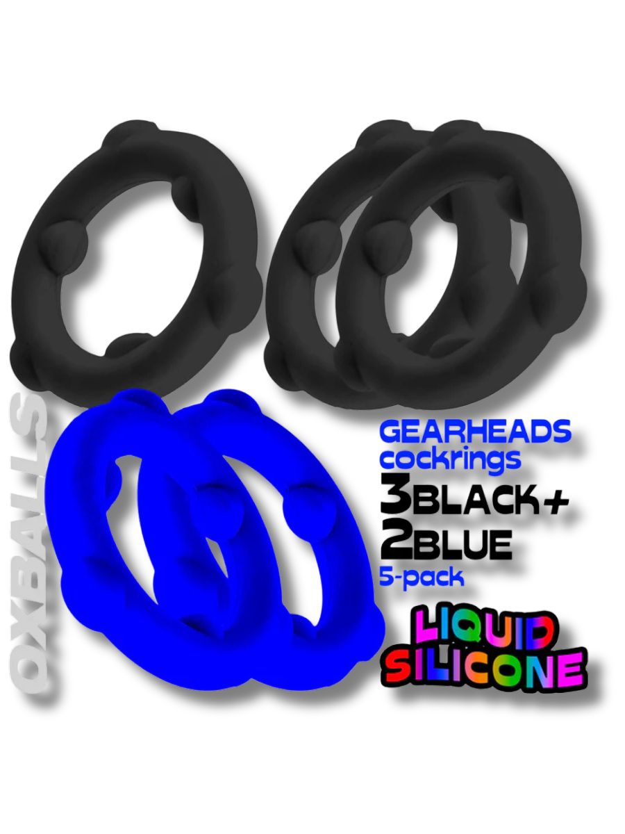 GEARHEADS mega 5-pack: liquid silicone ultra-play cockrings OXBALLS